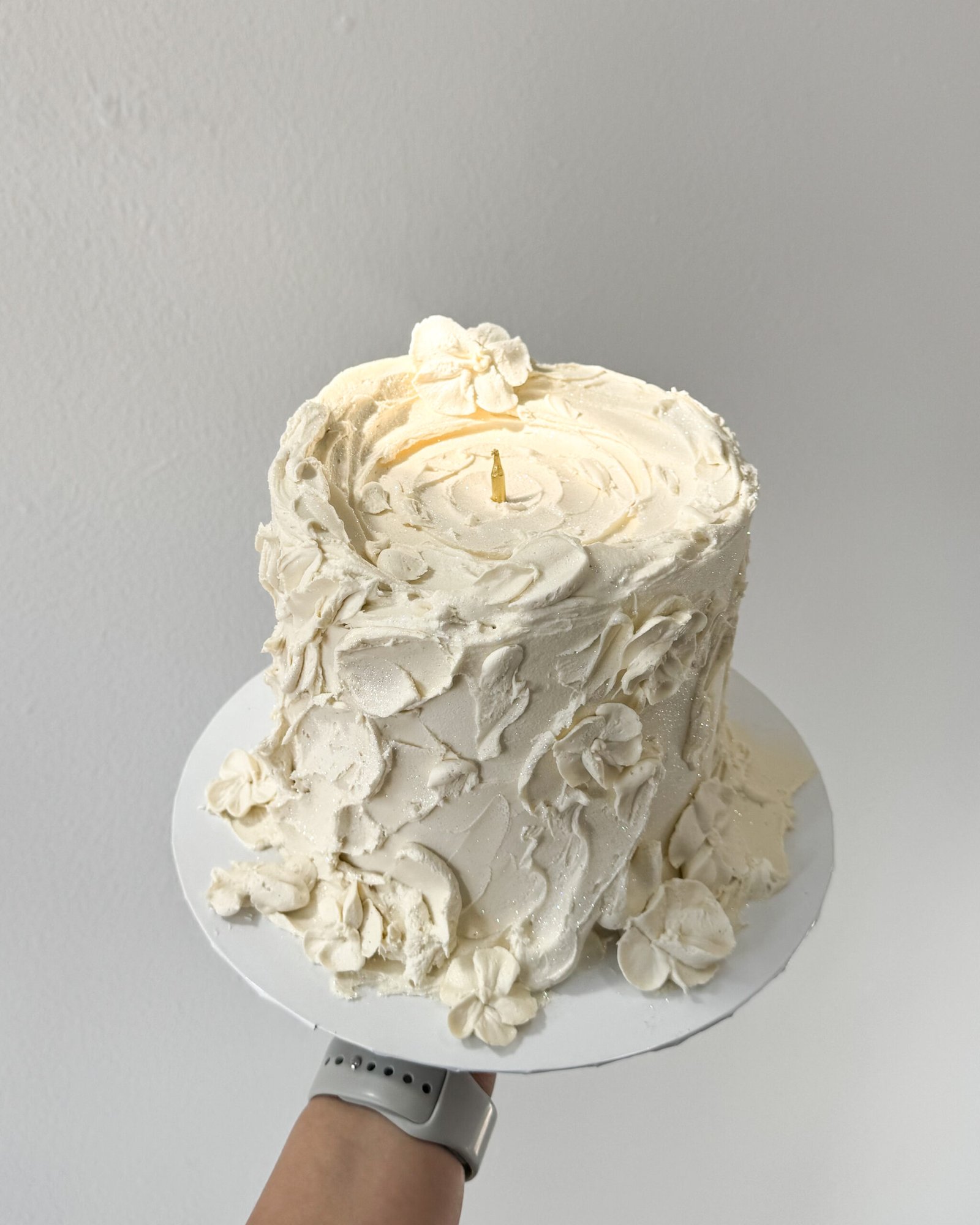 A modern twist on retro charm – a textured candle-sculpted design that feels bold, sleek, and full of character. Includes a round cake with sculpted detail that mimics a melting candle effect.