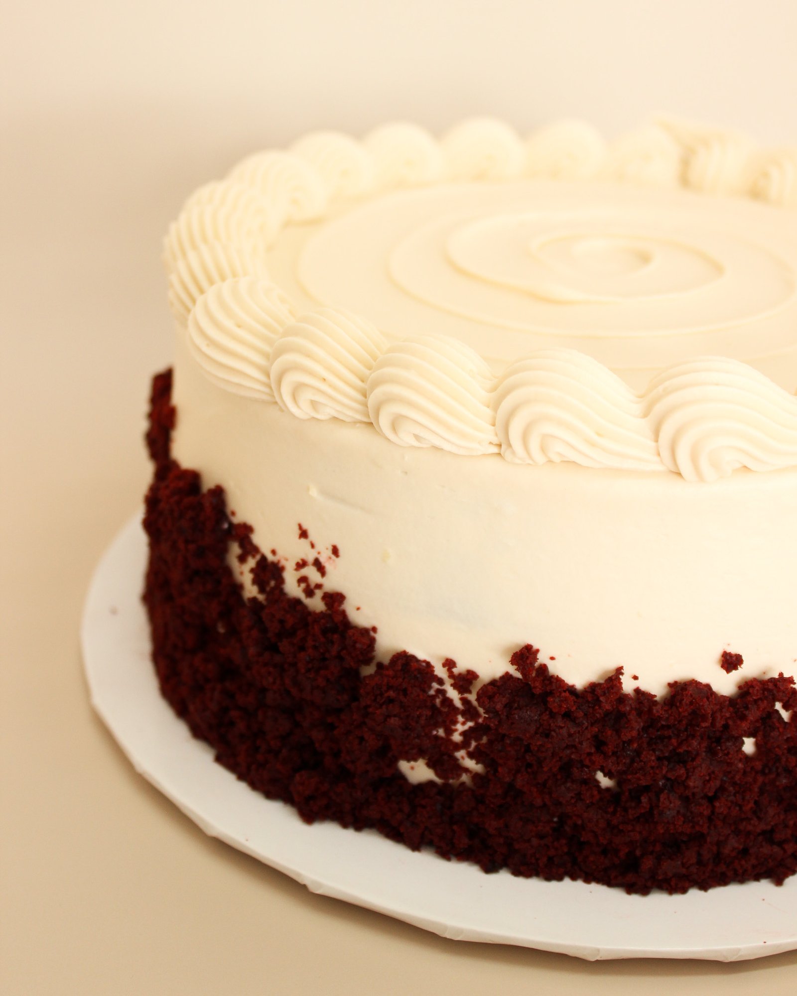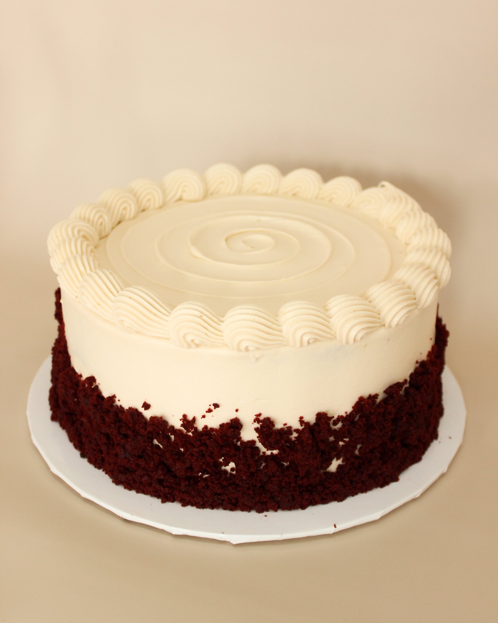 Our red velvet cream cheese cake is made with a tender red sponge and layered with smooth cream cheese frosting — a simple, classic indulgence that suits any occasion.